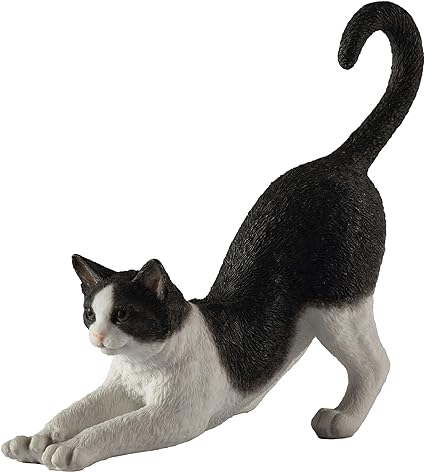 ストレッチする白黒の斑の猫の彫像長さ約12.4cm彫刻キャットネコフィギュア置物子猫インテリア置物アウトドア輸入品