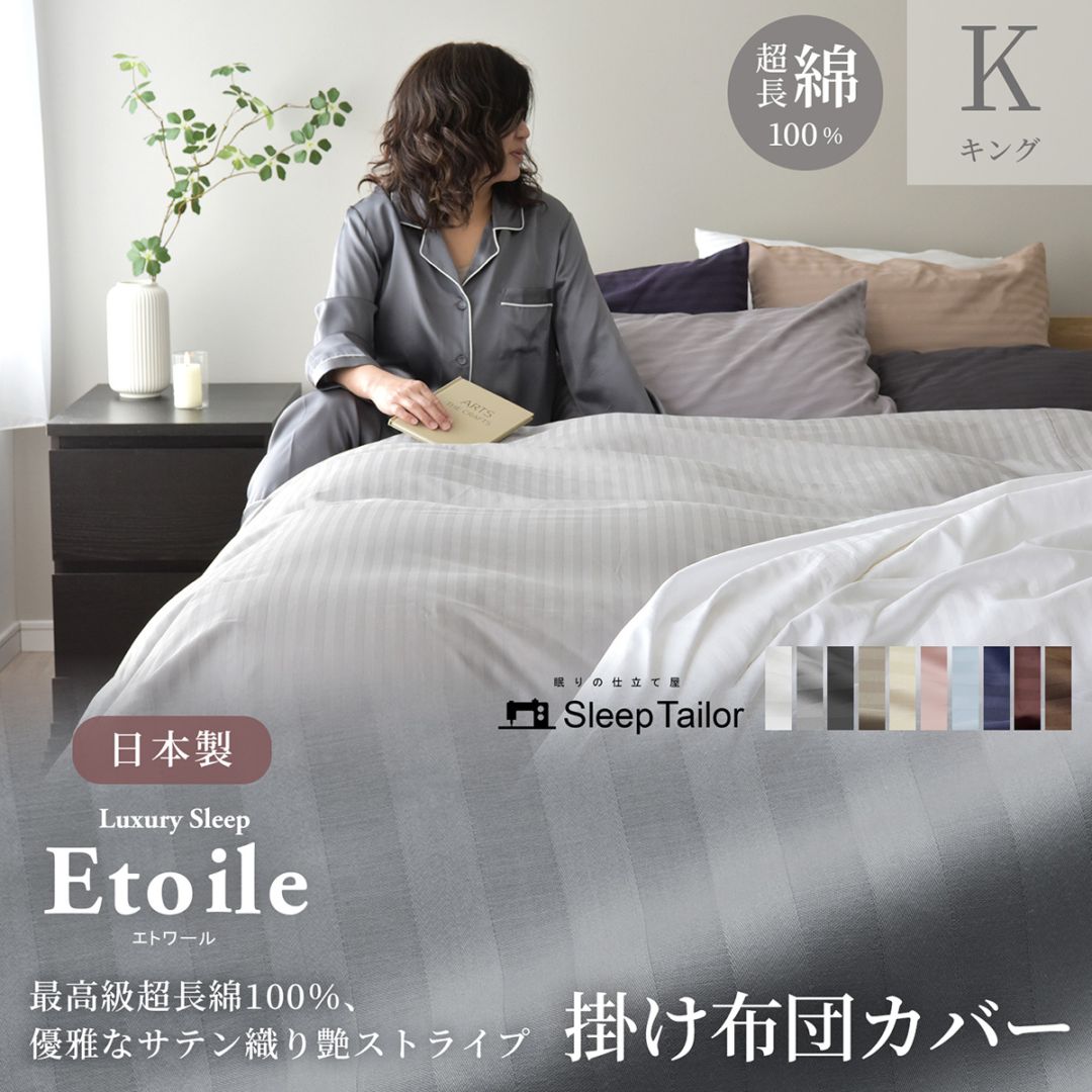 【11/30日迄5%OFF クーポンで最大20%off】 掛け布団カバー キング サテンストライプ 防ダニ 日本製 高級ホテル仕様...