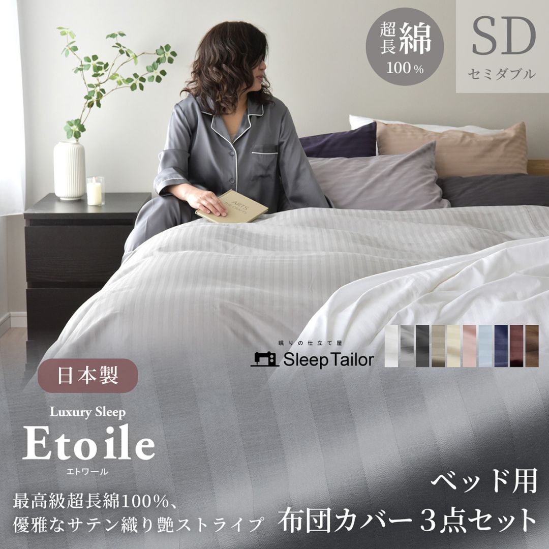 【11/30日迄5%OFF クーポンで最大20%off】 布団カバー 3点セット セミダブル 防ダニ サテンストライプ 日本製 高...