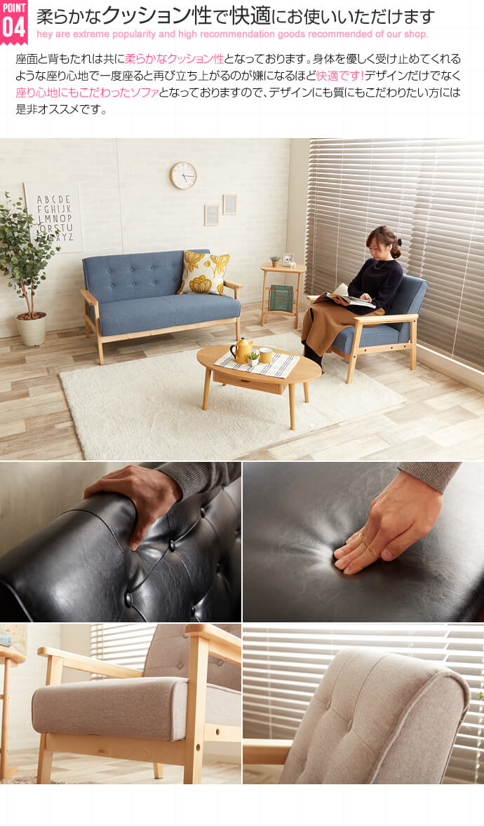 セレノソファ(1人掛け・クロスステッチ・木肘:ナチュラル) ネイビー CS60NV-FB-NA