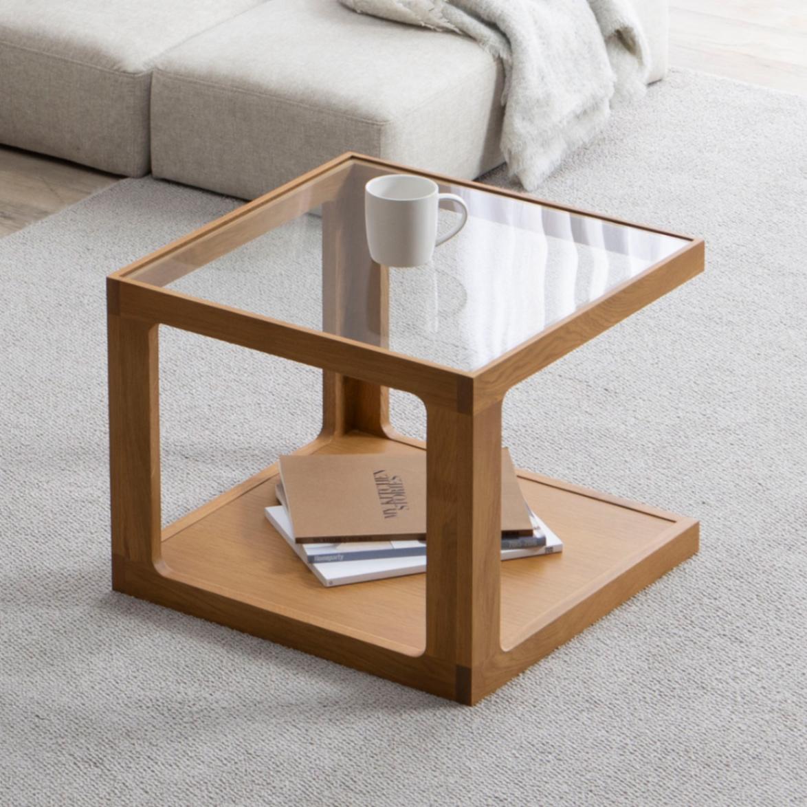 [幅50] ダグ | ガラス リビングテーブル ローテーブル センターテーブル オーク 無垢材