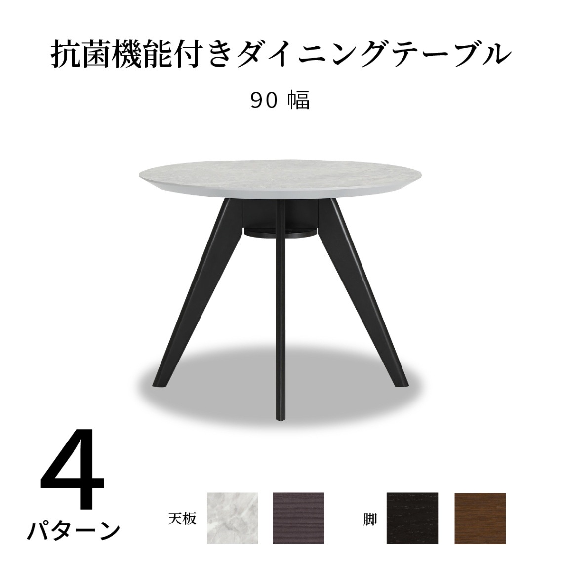 [幅90] 丸テーブル メラミン 抗ウイルス ウイルテクト 石目柄 白 円形 大理石調 4人掛け ラウンドテーブル クロス脚 ダイ...