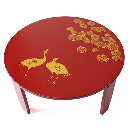和風カフェテーブル小松鶴(赤)