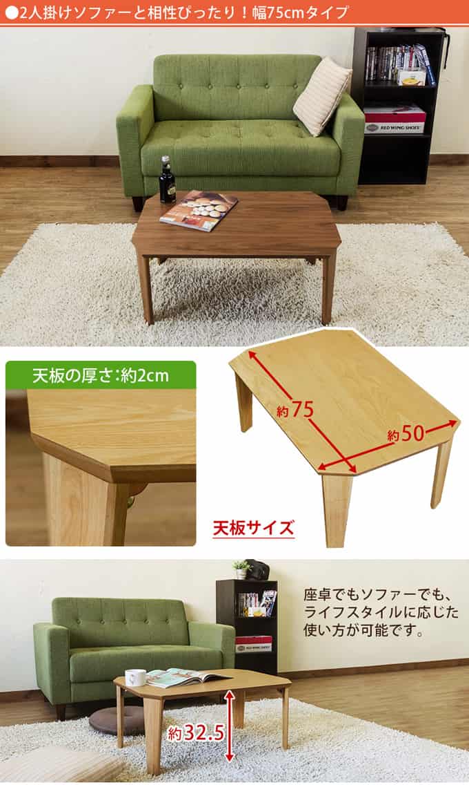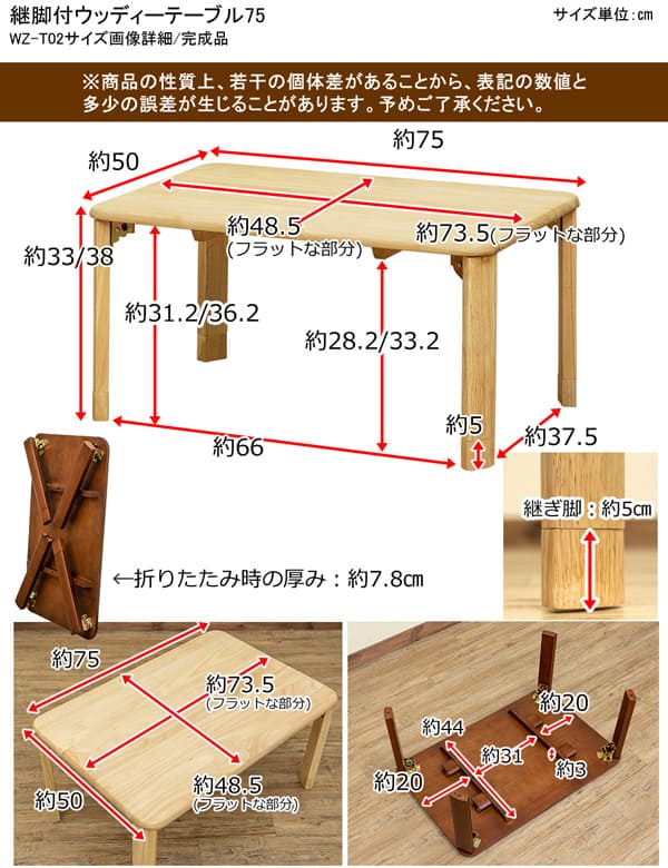 継脚付 ウッディテーブル 75×50 WZ-T02-NA ナチュラル