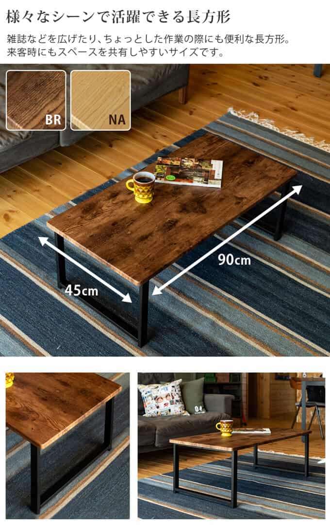継脚付 ウッディテーブル 90×50 WZ-T03-NA ナチュラル