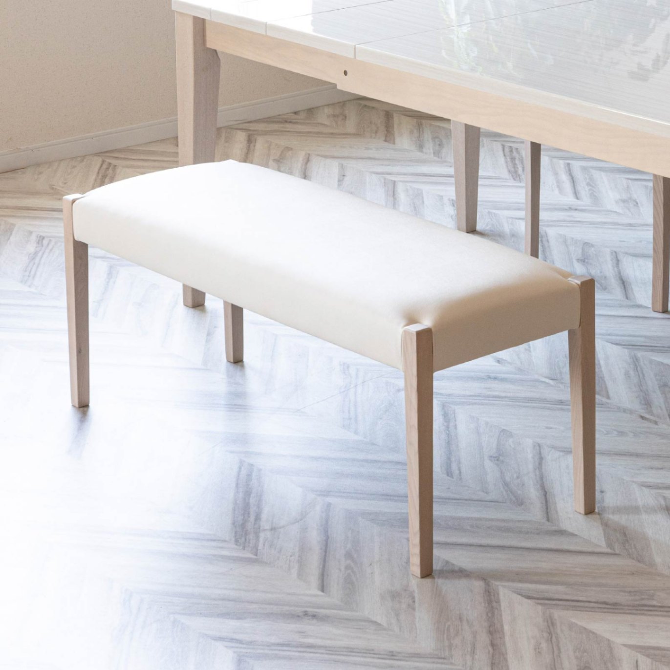 [幅110/座面高45]ダイニングベンチ PVCレザー 無垢材 白木目 ベンチ 二人掛け