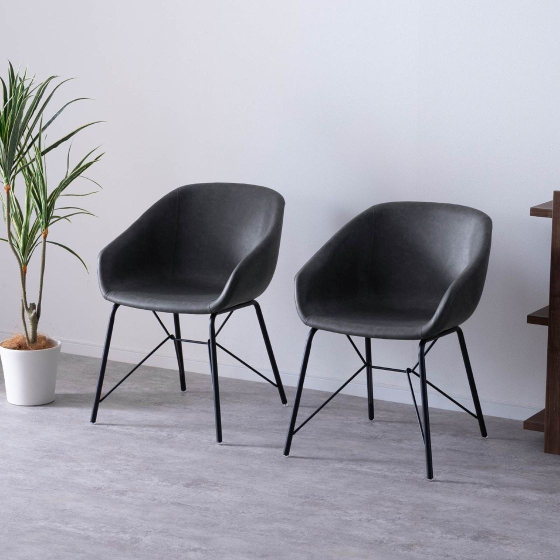 【2脚セット】[座面高43.5] インダストリアルチェア | アイアン脚 モノトーン PVSレザー ダイニングチェア
