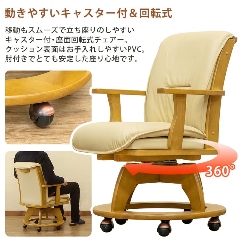 MEGAN キャスター付きダイニングチェア HTR-09-NA ナチュラル