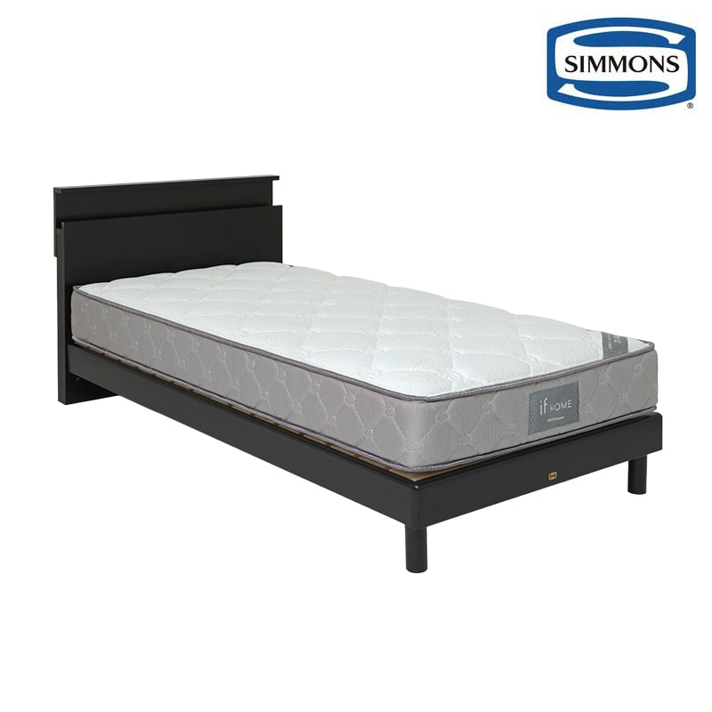 Office168厳選ベッド ブラック シングル ポケットコイルマットレス付き すのこ 棚付き コンセント付き スマホスタンド 頑...
