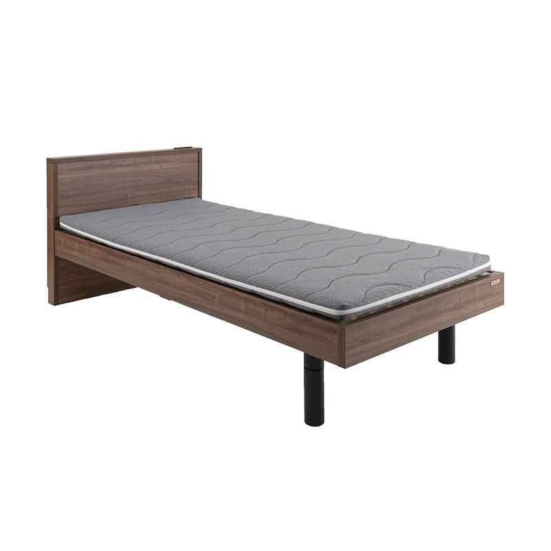 ベッド ショート丈 セミシングル ポケットコイルマットレス付き ブラウン 高さ調整 棚付 コンセント すのこ 木製送料無料