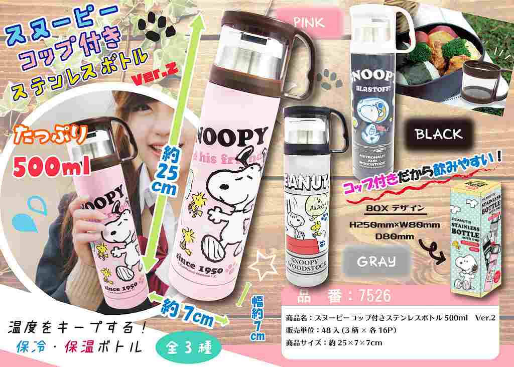 スヌーピー コップ付きステンレスボトル 500ml コップ飲み すいとう キャラクター ステンレスボトル IT7526