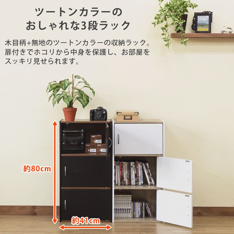 GRANZ 3段ラック 扉3枚 HMP-25-WH ホワイト