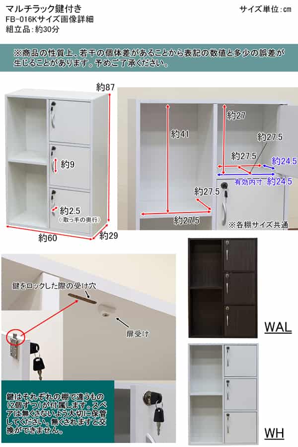 マルチラック 鍵付き FB-016K-WH ホワイト
