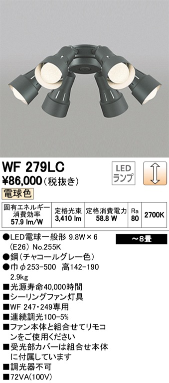 オーデリック WF279PR|LEDシーリングファン DCモーターファン(6枚羽根) 灯具・LED電球タイプ(電球色・連続調光・~...