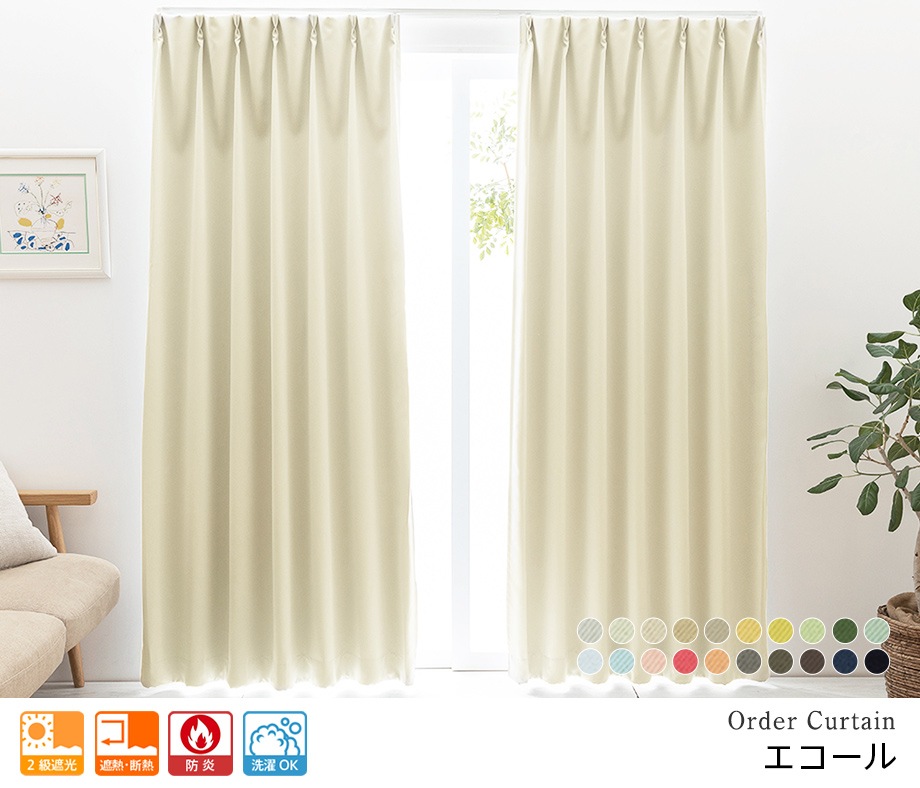 リサイクルしたポリエステルで作ったエコな無地防炎遮光カーテン ECO「エコール」リネンベージュ(2級遮光)
