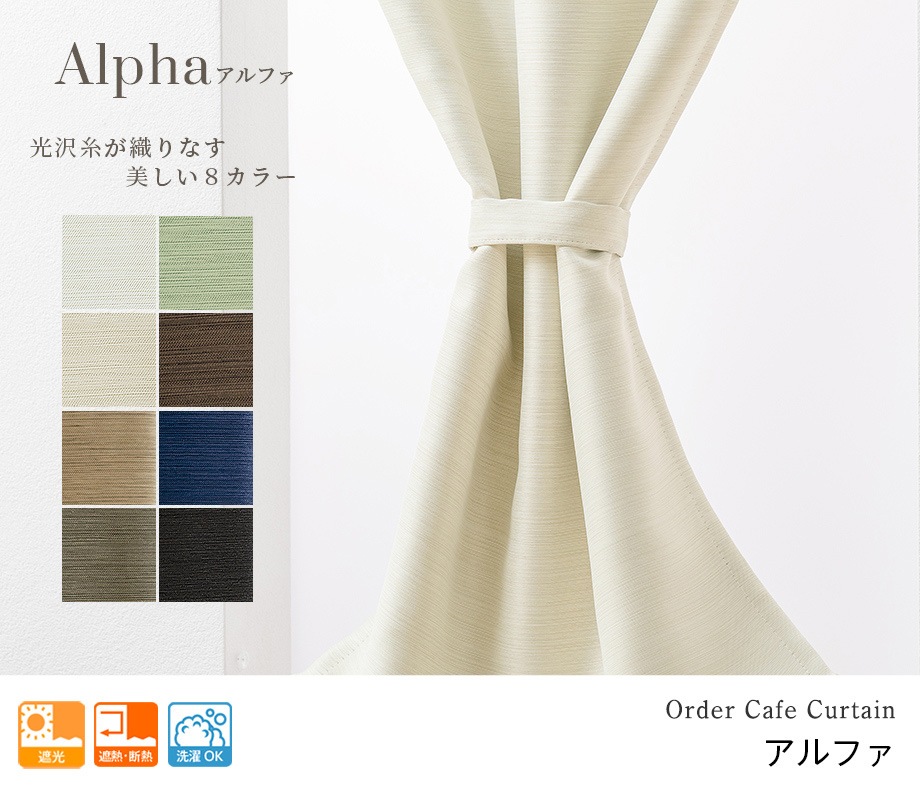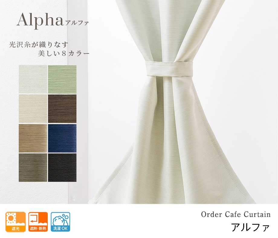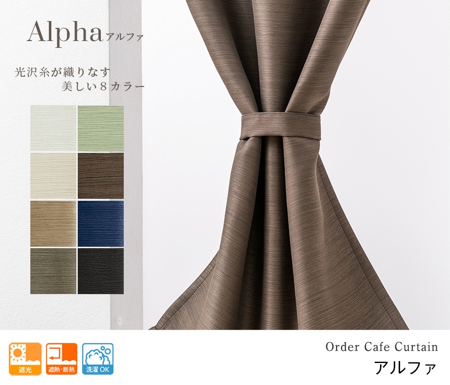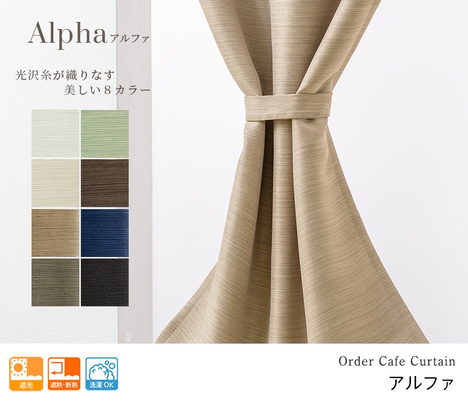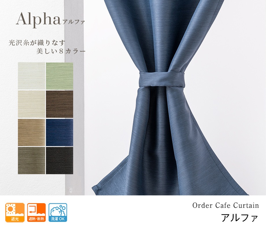 主張しすぎない光沢と繊細な織り感が美しい遮光カフェカーテン「アルファ」非防炎タイプ チャコールブラック(1級遮光)