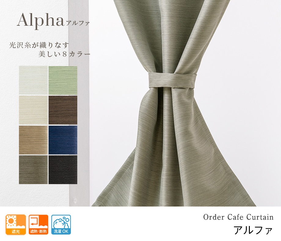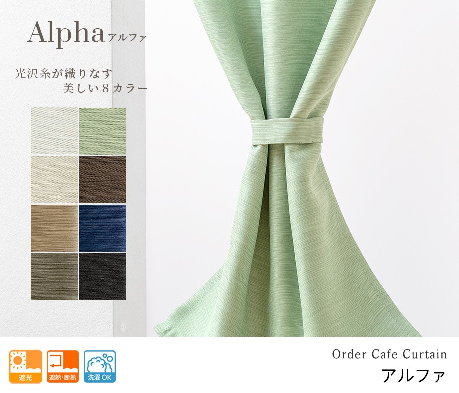 主張しすぎない光沢と繊細な織り感が美しい遮光カフェカーテン「アルファ」非防炎タイプ グリーン(1級遮光)