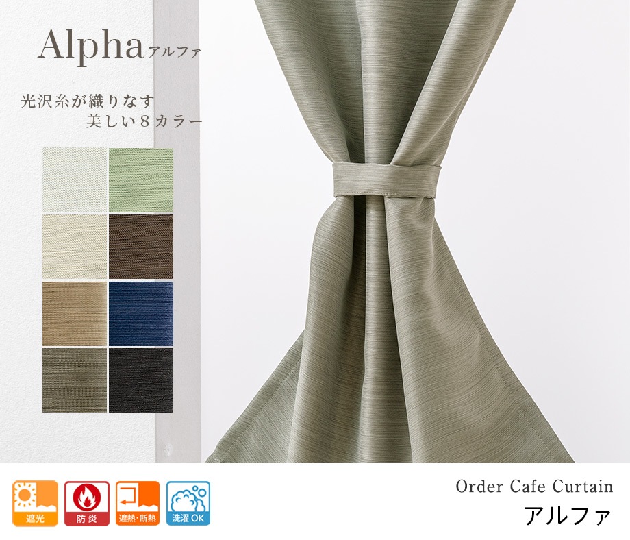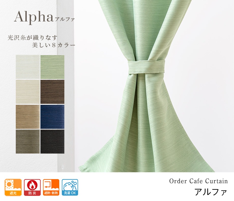 主張しすぎない光沢と繊細な織り感が美しい防炎遮光カフェカーテン「アルファ」防炎タイプ グリーン(1級遮光)