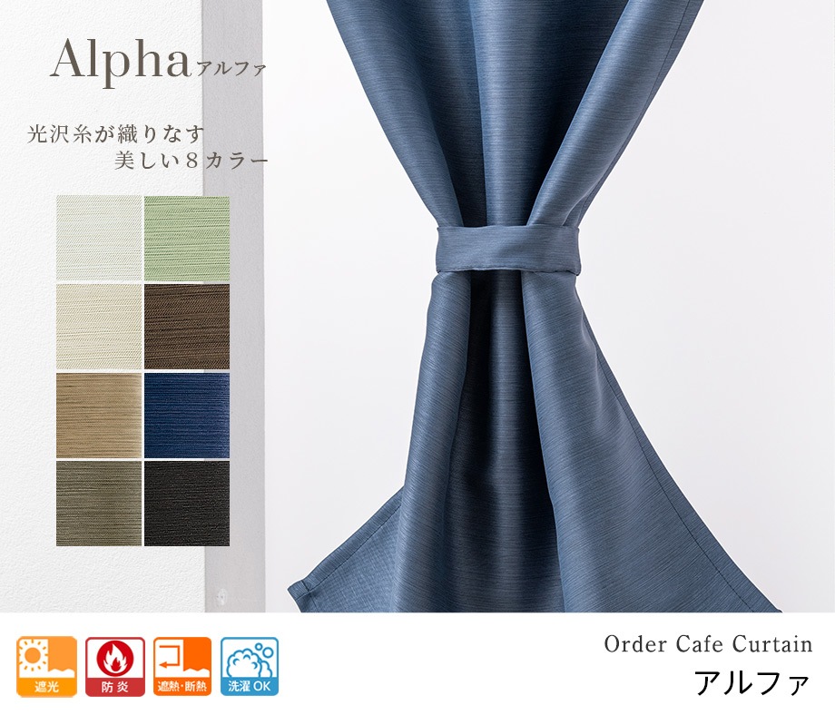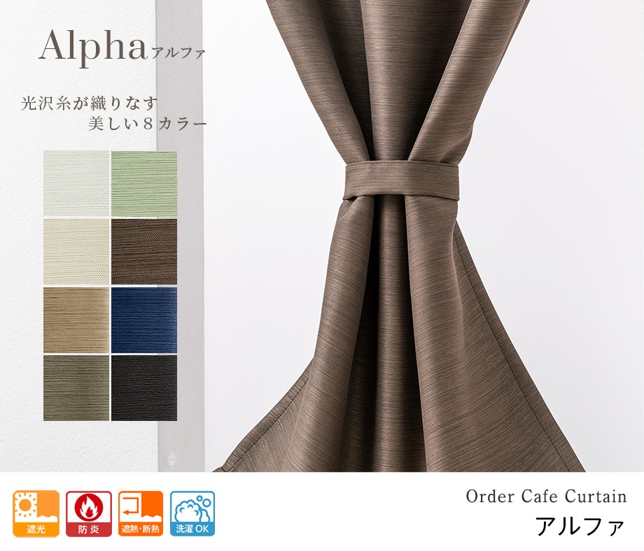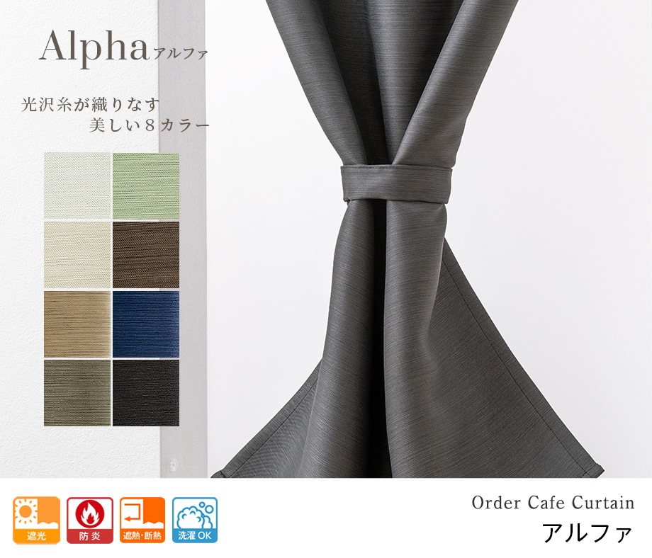 主張しすぎない光沢と繊細な織り感が美しい防炎遮光カフェカーテン「アルファ」防炎タイプ チャコールブラック(1級遮光)