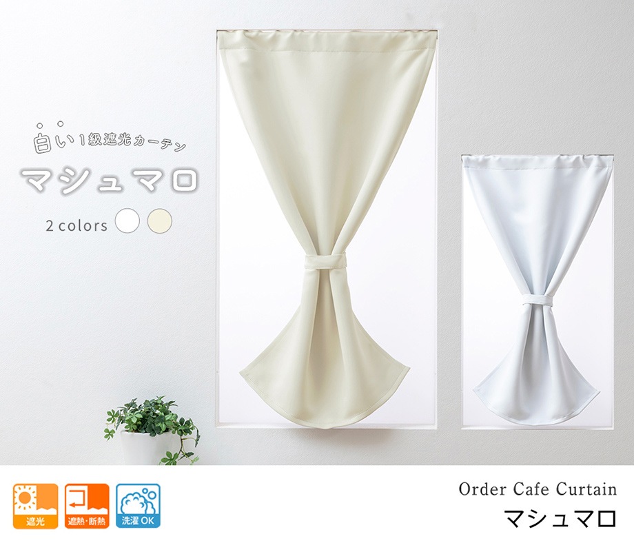 柔らかい生地にふわりとした肌触りの白い1級遮光カフェカーテン「マシュマロ」ホワイト