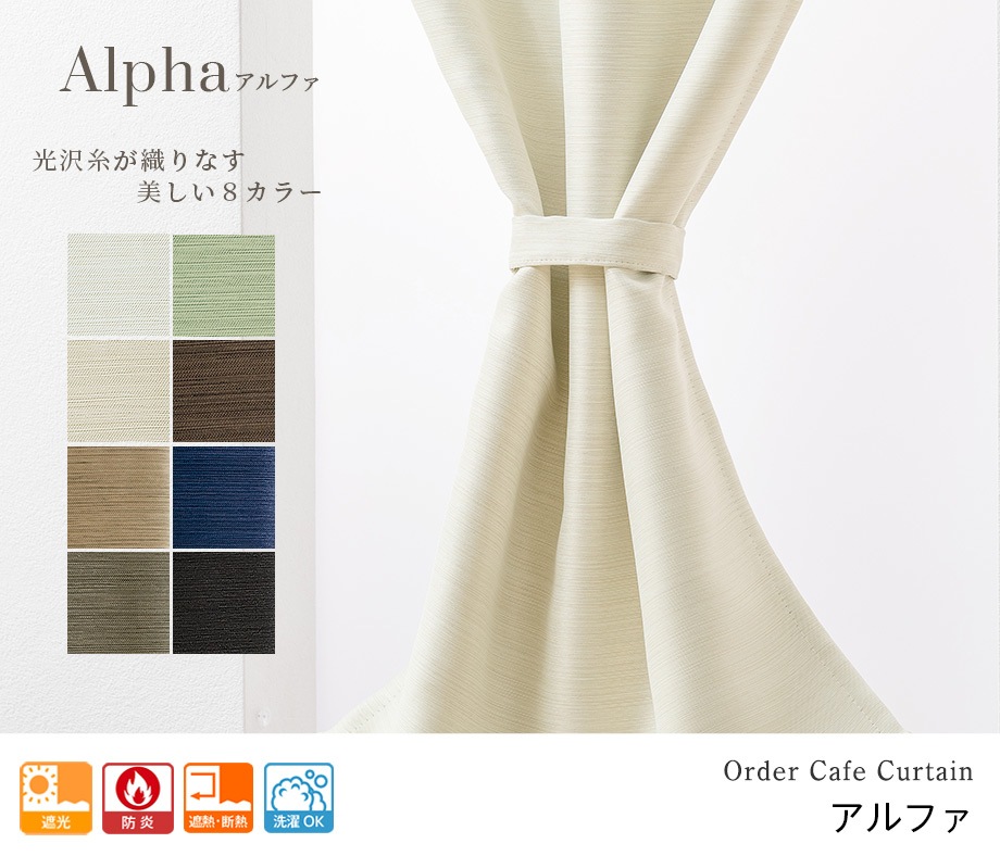 主張しすぎない光沢と繊細な織り感が美しい防炎遮光カフェカーテン「アルファ」防炎タイプ アイボリー(2級遮光)
