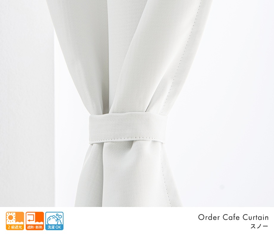 くすみのない明るいホワイトの2級遮光カフェカーテン「スノー」ホワイト