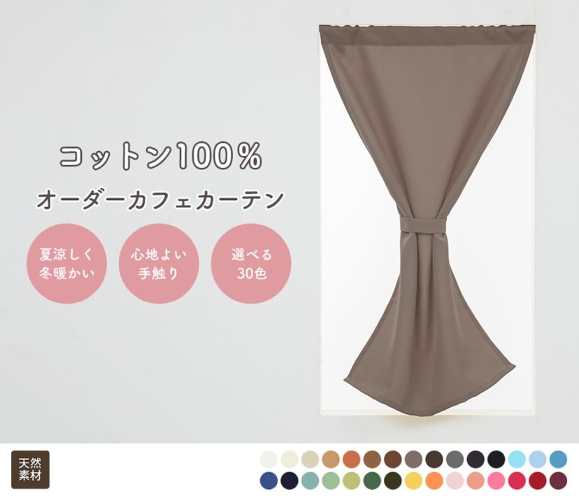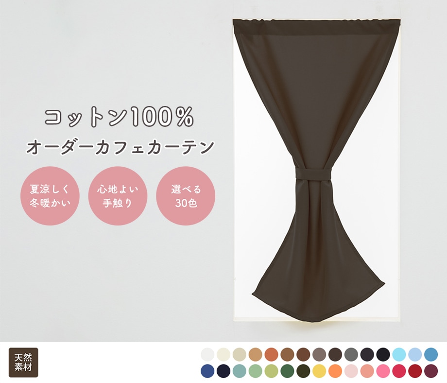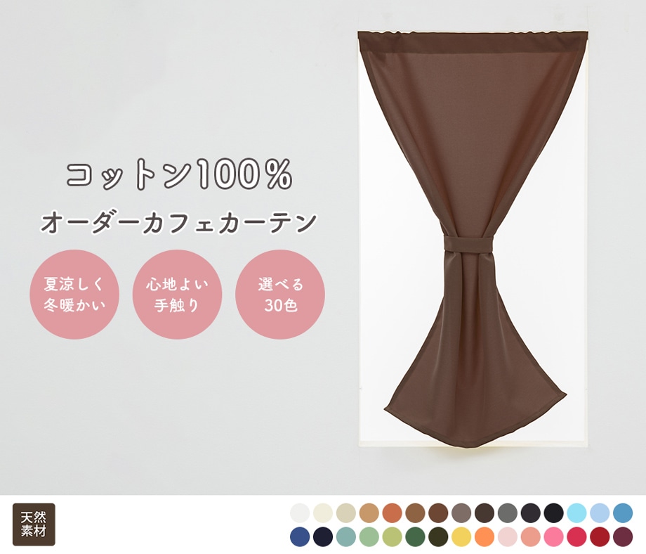 綿(コットン)100% 無地 さらっとした触り心地のオックス織り天然素材カフェカーテン ブラウン