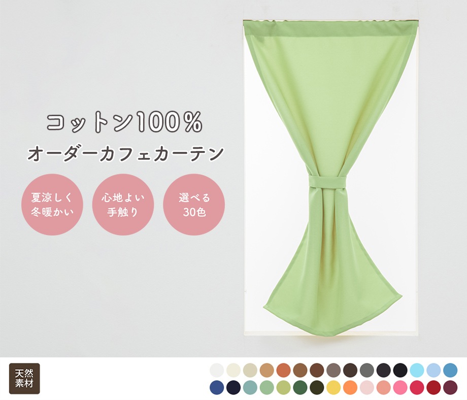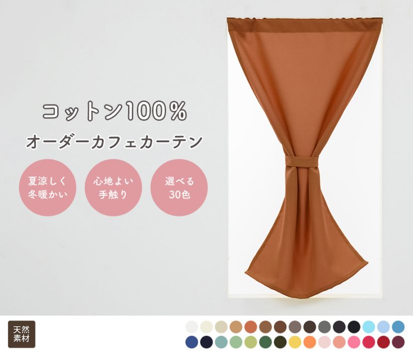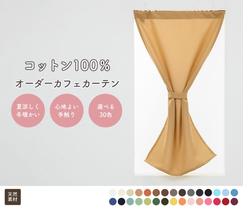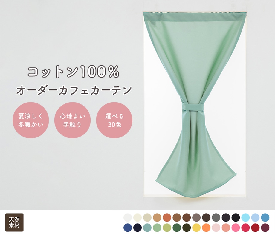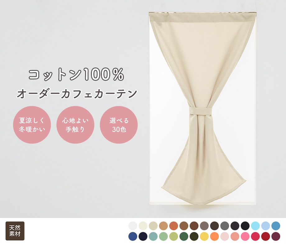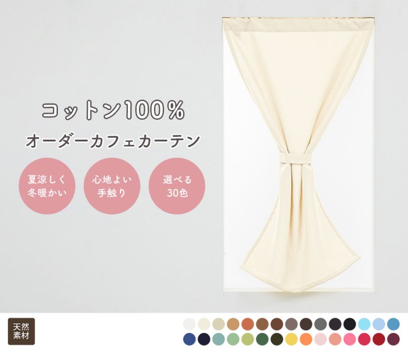 綿(コットン)100% 無地 さらっとした触り心地のオックス織り天然素材カフェカーテン ナチュラル