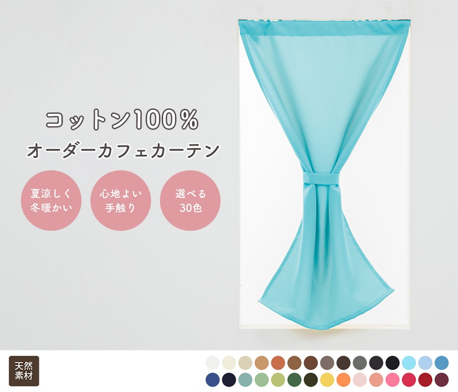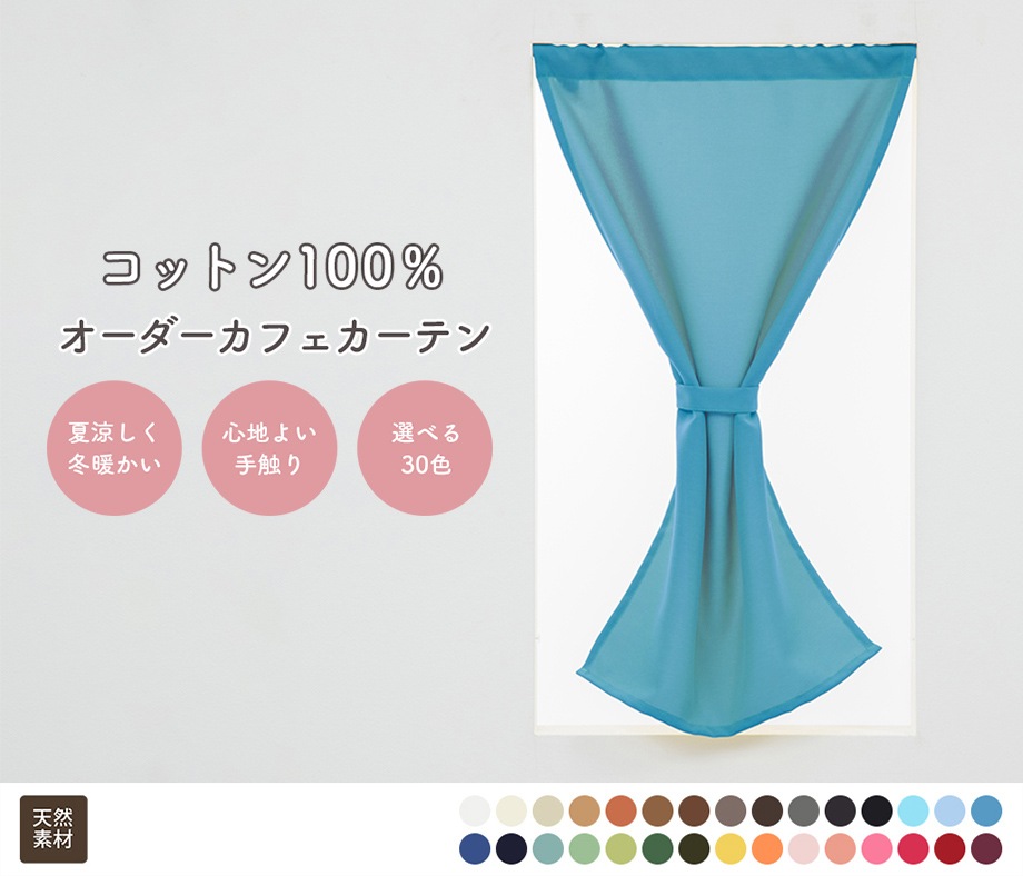 綿(コットン)100% 無地 さらっとした触り心地のオックス織り天然素材カフェカーテン ターコイズブルー