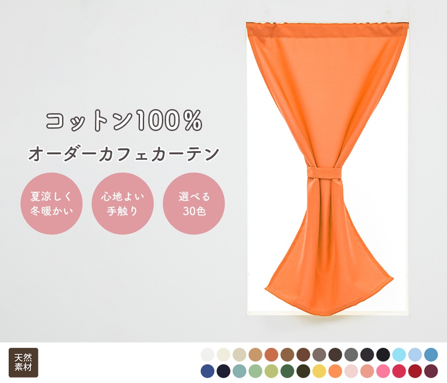 綿(コットン)100% 無地 さらっとした触り心地のオックス織り天然素材カフェカーテン オレンジ