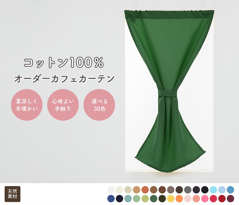 綿(コットン)100% 無地 さらっとした触り心地のオックス織り天然素材カフェカーテン グラスグリーン
