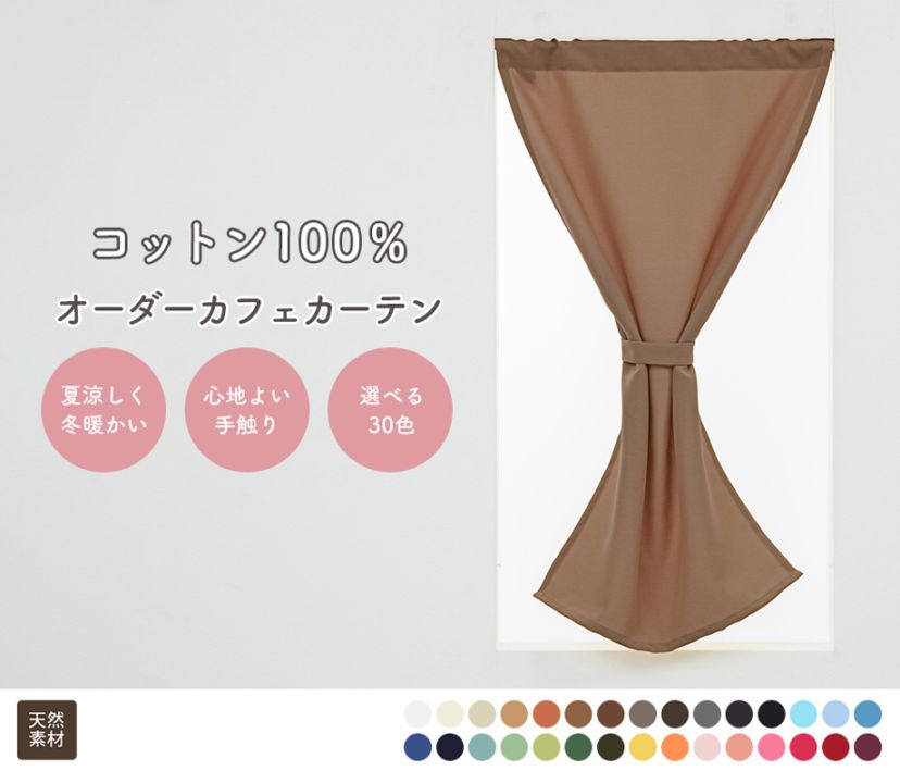 綿(コットン)100% 無地 さらっとした触り心地のオックス織り天然素材カフェカーテン ライトブラウン