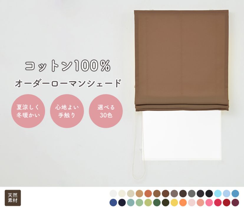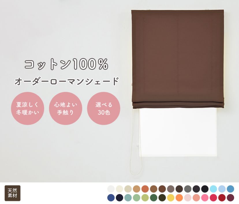 【幕体のみ】綿(コットン)100% 無地 さらっとした触り心地のオックス織り天然素材ローマンシェード ブラウン【買い替え用】
