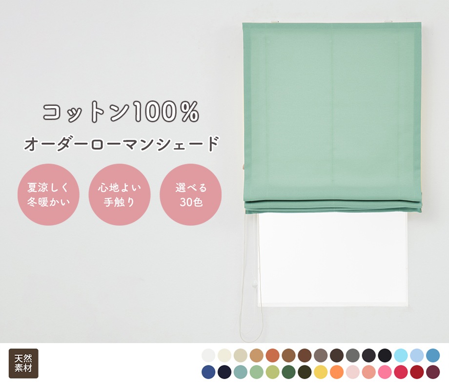 【幕体のみ】綿(コットン)100% 無地 さらっとした触り心地のオックス織り天然素材ローマンシェード ブルーグリーン【買い替え用】