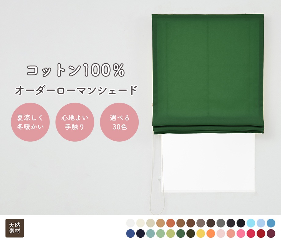 【幕体のみ】綿(コットン)100% 無地 さらっとした触り心地のオックス織り天然素材ローマンシェード グラスグリーン【買い替え用】