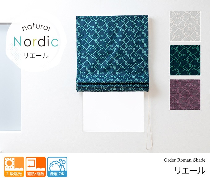 北欧をイメージしたオーダー防炎遮光ローマンシェード「ナチュラル ノルディック」ダブル/遮光 遮熱・断熱 防炎 洗濯OK 日本製