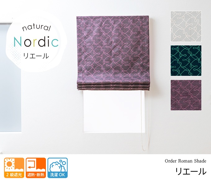 【幕体のみ】ナチュラル ノルディック リエール(パープル) オーダーローマンシェード/2級遮光 遮熱・断熱 洗濯OK 日本製【買い...