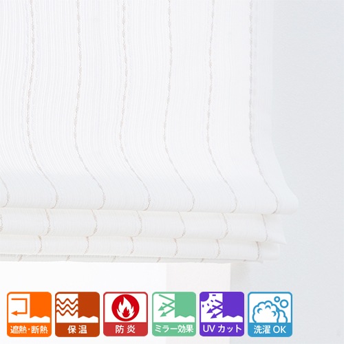 【幕体のみ】ナチュラルな色合いのエレガントなストライプ柄 防炎UVカットミラーレースローマンシェード「リーニュ」【買い替え用】