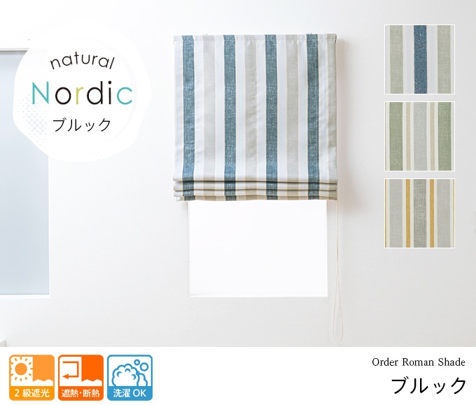 【幕体のみ】ナチュラル ノルディック ブルック(グリーン) オーダーローマンシェード/2級遮光 遮熱・断熱 洗濯OK 日本製【買い...