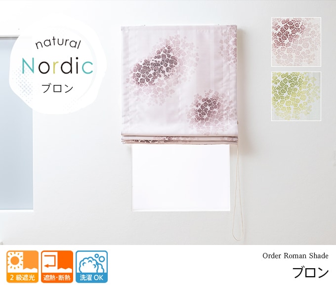 【幕体のみ】ナチュラル ノルディック ブロン(ピンク) オーダーローマンシェード/2級遮光 遮熱・断熱 洗濯OK 日本製【買い替え...