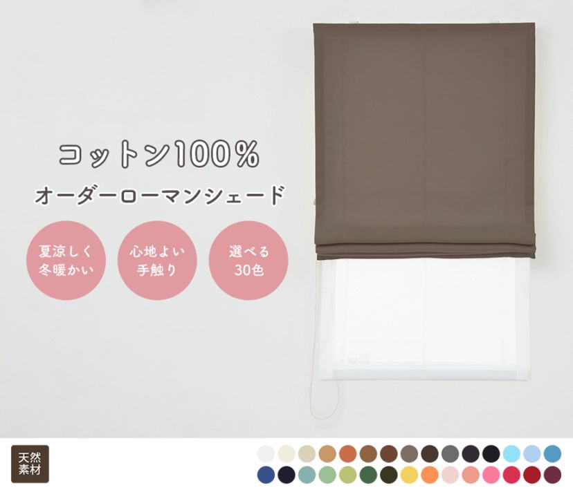 夏も冬もオールシーズン快適な無地のプリーツスクリーン 「ハニカムシェード 彩」(幅180cmx丈180cm)
