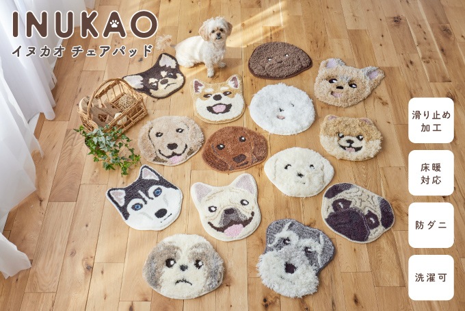 かわいい犬の顔を模したチェアパッド「イヌカオ」全14種 洗える 防ダニ すべり止め 床暖房対応 日本製