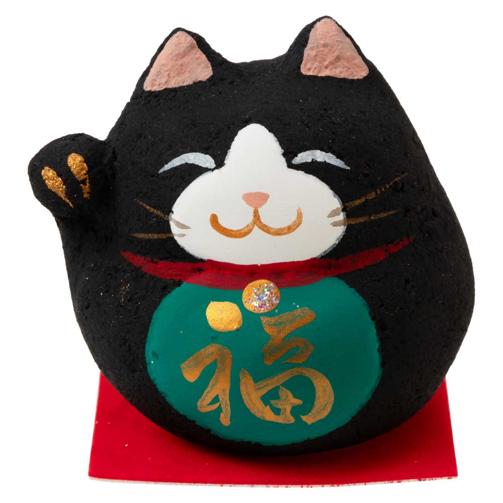 桐のこ人形 丸招き猫 クロ右手上げ(旧型) 木之本 桐の粉を固めて作ったハンドメイドの猫置物 福島県の工芸品 Lucky cat ...