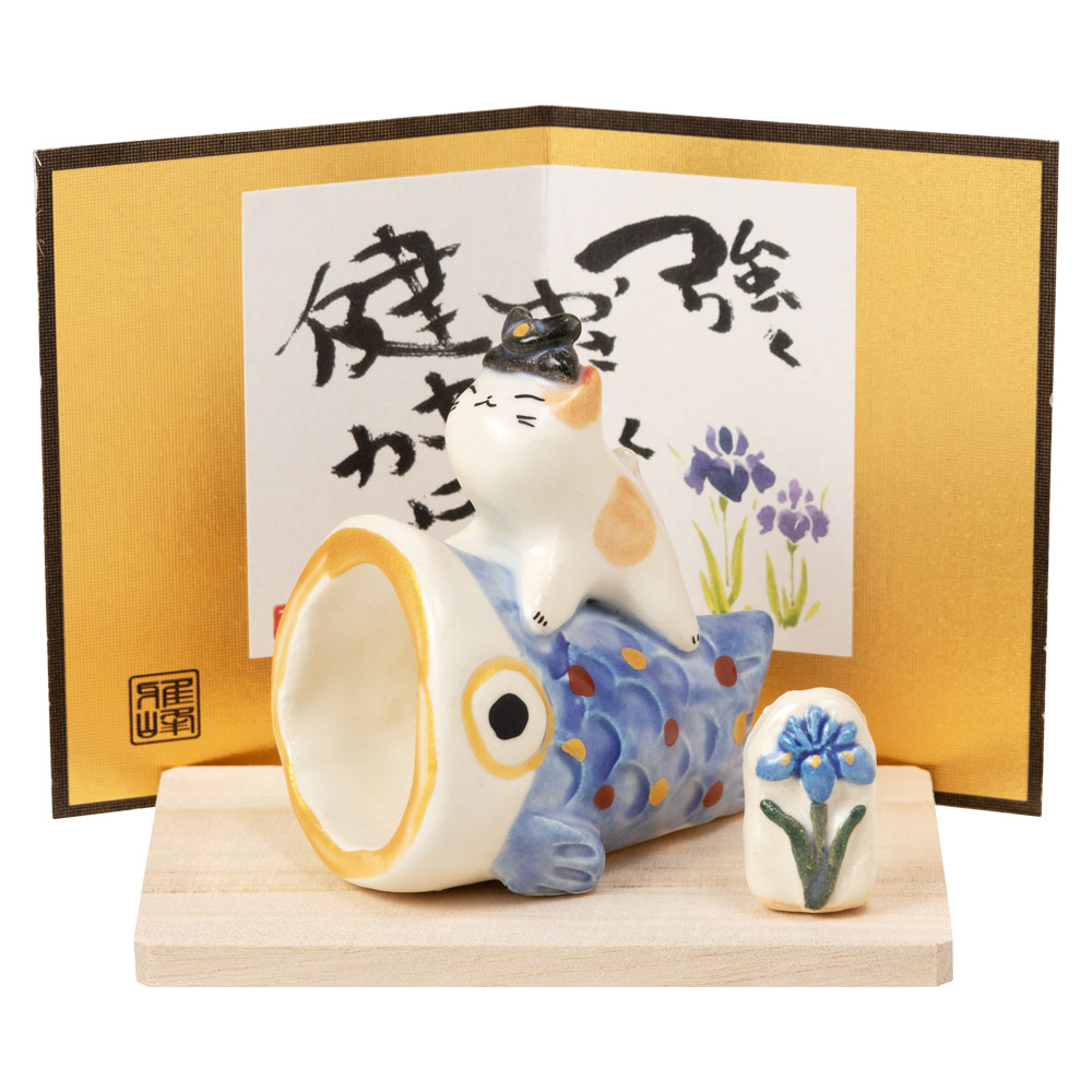 猫と鯉のぼり・青 (MK185) 瀬戸焼の皐月飾り スタジオRR 端午の節句・五月人形 Boys festival decorat...