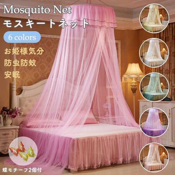 【セール】【即納】 安眠グッズ 天蓋カーテン 吊り下げ 設置 スリーピングカーテン モスキートネット ベッド蚊帳 防虫 防蚊 蝶モ...