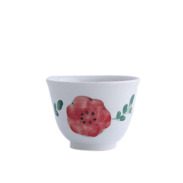 砥部焼 梅山窯・面取り湯呑み(大)赤花