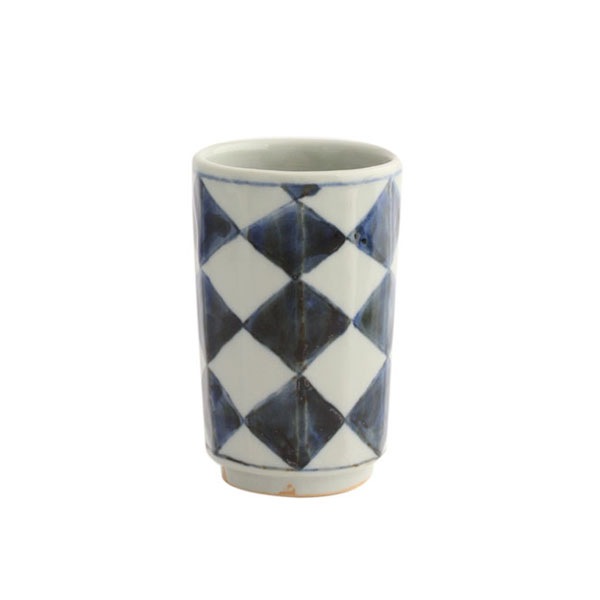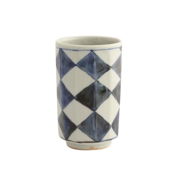 須谷窯 面取湯呑/大(市松文) 九谷焼