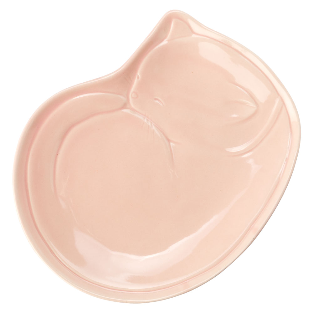 瀬戸焼 眠り猫トレー 桃 (K4397) 愛知県の工芸品 Seto-yaki cat tray Aichi craft