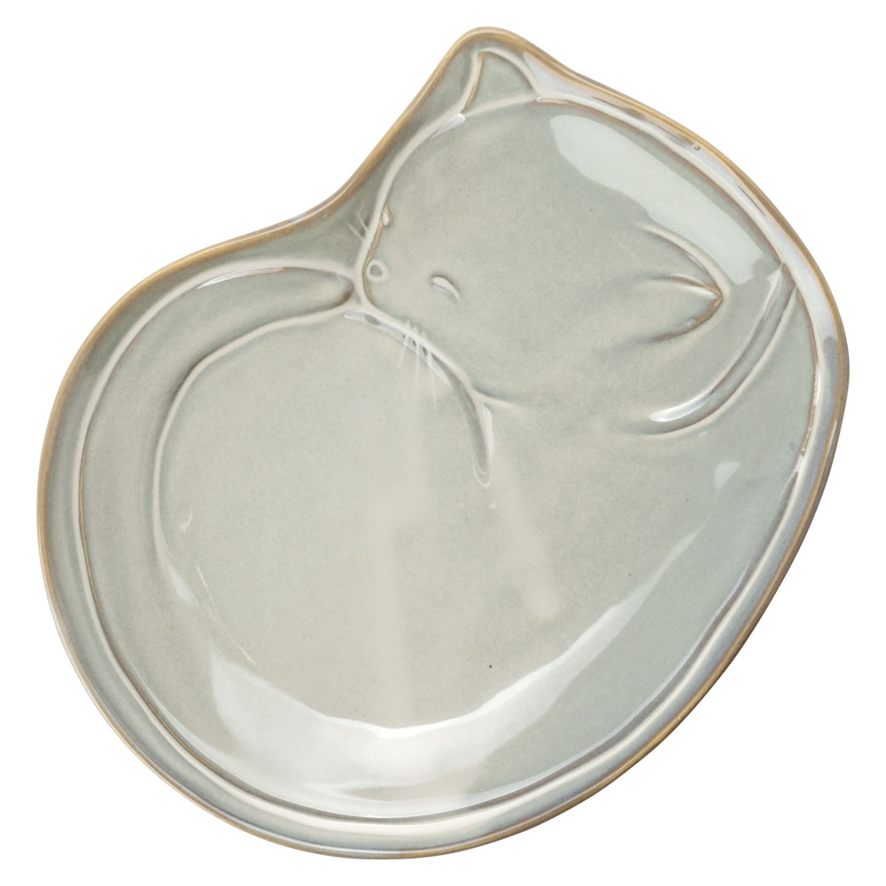 瀬戸焼 眠り猫トレー 白 (K4396) 愛知県の工芸品 Seto-yaki cat tray Aichi craft