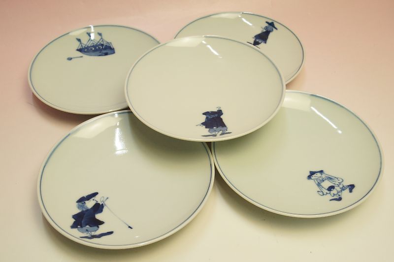 青花 絵変わり 丸銘々皿揃